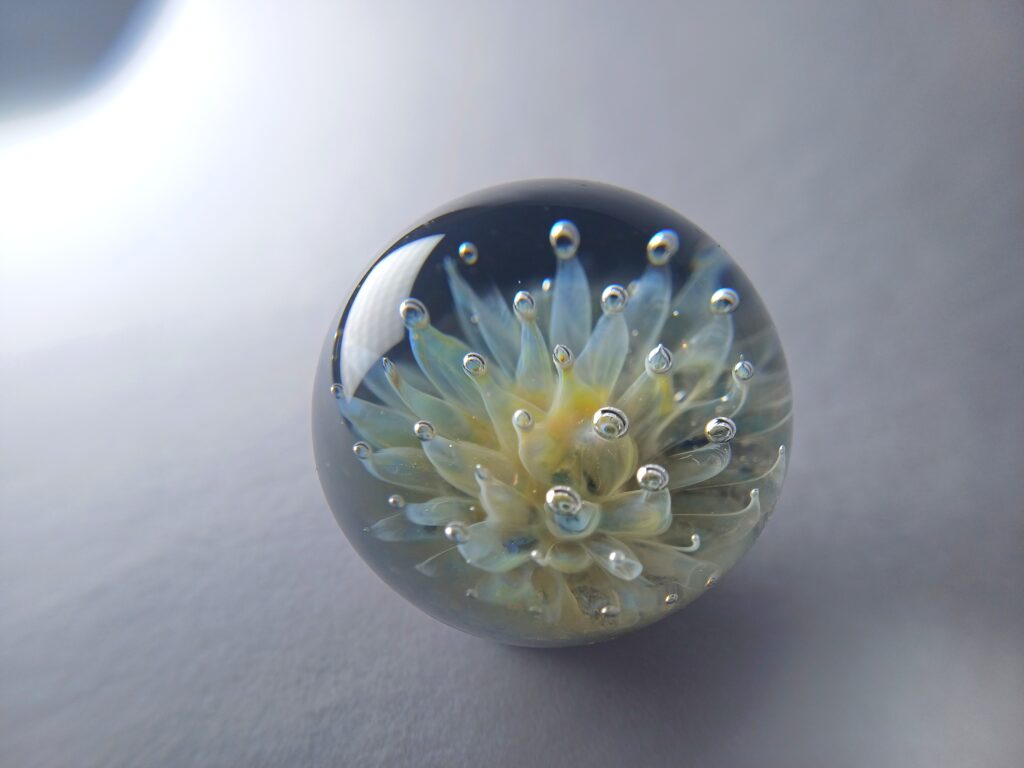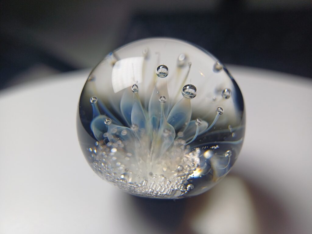 Atelier Etherna crée des pièces uniques en verre avec inclusion de cendres funéraires.